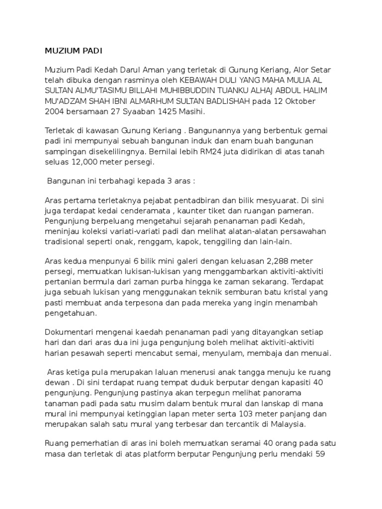 Especially kedah which is known as negeri jelapang padi (state of. 2020 top things to do in padang hang. The paddy museum is a museum in alor setar, kota setar, kedah, malaysia. Anda pasti akan teruja dan berpuas hati. Nunca es demasiado tarde para reservar un viaje.